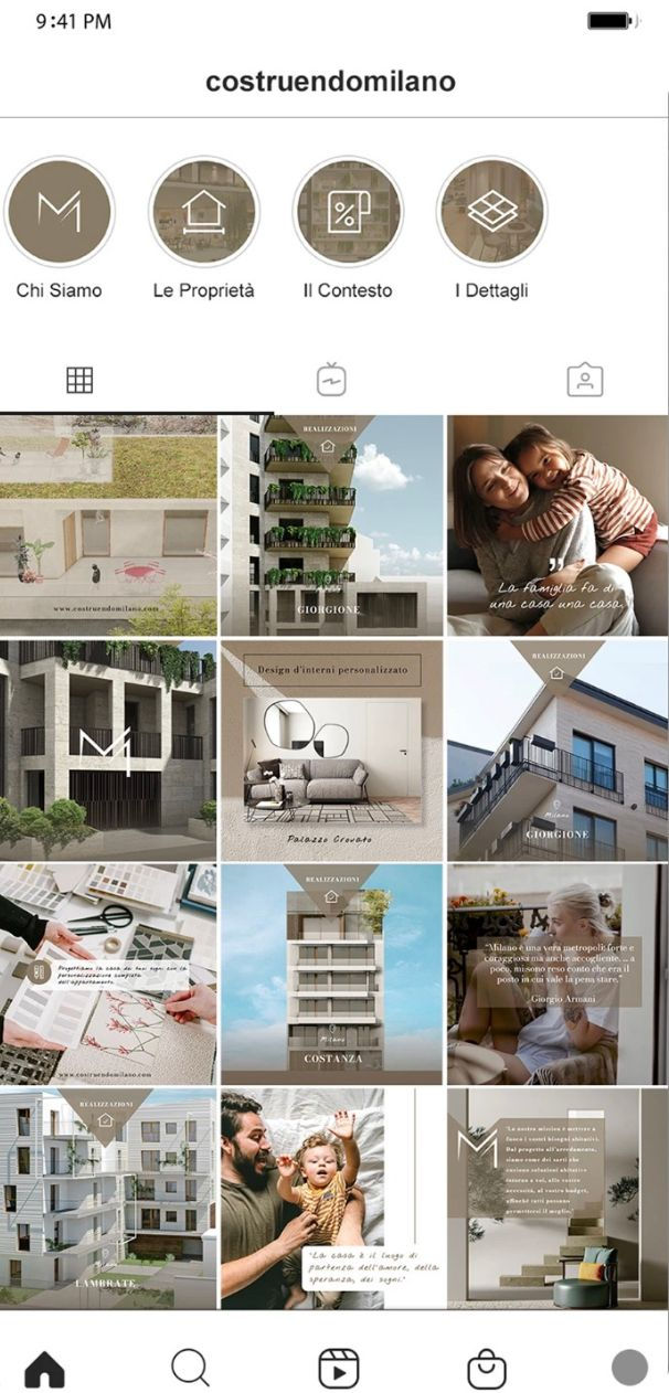 Costruendo Milano is a luxury real estate and architectural development brand based in Milan, Italy — blending timeless design with modern functionality. The social media presence was envisioned to mirror the brand’s architectural sophistication, emotional warmth, and Italian craftsmanship.