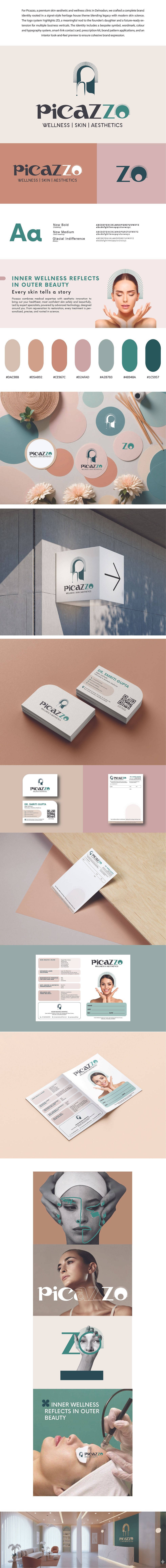 For Picazzo, a premium skin-aesthetic and wellness clinic in Dehradun, we built a refined brand identity blending heritage elegance with modern clinical clarity. The ZO monogram anchors the system as a future-ready brand asset, supported by a cohesive colour–type palette, stationery suite, smart-link card, prescription kit, and interior mood direction — creating a unified, premium experience across all touchpoints.